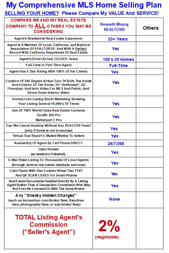 YOU CAN TRUST ME TO SELL (OR BUY) YOUR HOME: Prior to becoming a REALTOR®, Kenneth Wozny was a successful Doctor Of Optometry for 25 years with multiple offices in southern California. He has 23+ years of extensive experience so far as a REALTOR®. Collectively, he has worked directly with the public for 45+ years and in these 45+ years he NEVER has received ANY public complaints or any issues with the California Board Of Optometry or the California Department Of Real Estate.