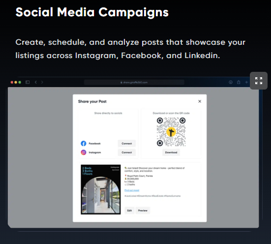 that showcase your listings across Instagram, Facebook, and Linkedin.